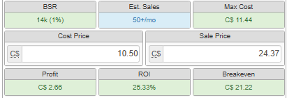 • Competitors: 7 FBA Sellers